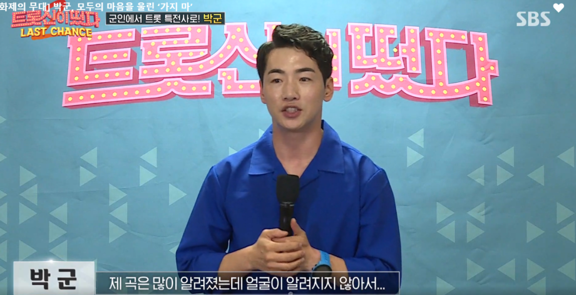 바로 트로트가수 박군 입니다. 박군은 특전사 출신으로 오랫동안 직업 군인을 하다가 최근 트로트 가수로 전향했다고 합니다. 히트곡 은 한잔해 로 대중에게 꽤 알려진 인물이기도 합니다. 그런데 말입니다...